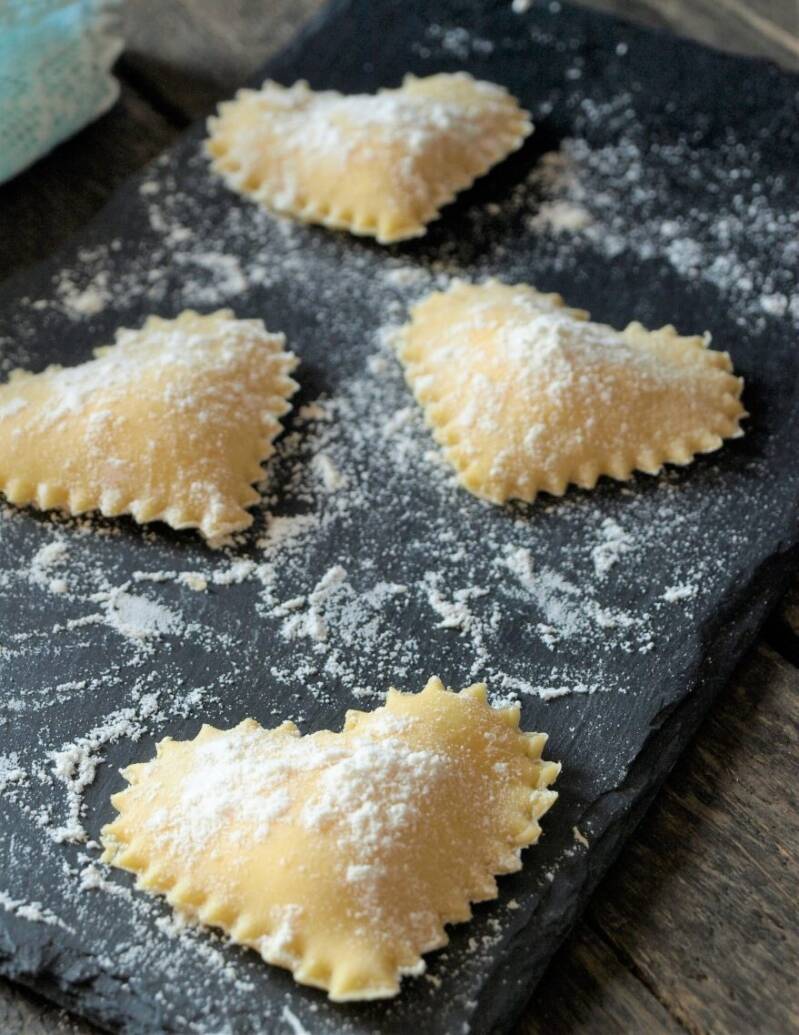 Per stendere la pasta potete usare semplicemente un mattarello oppure una macchina stendi pasta che creerà le sfoglie. Ricordatevi di infarinare bene la superficie in modo che non si attacchi.